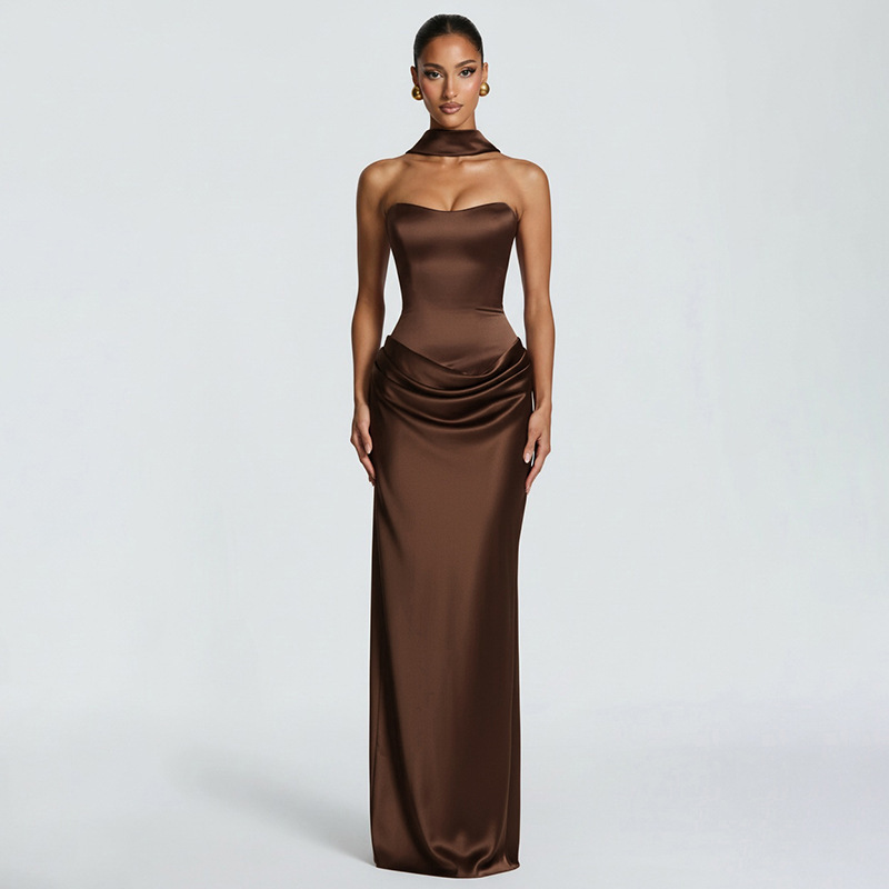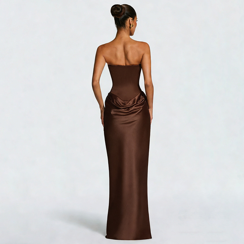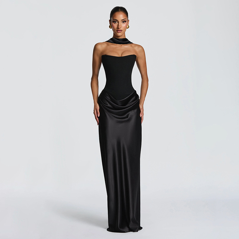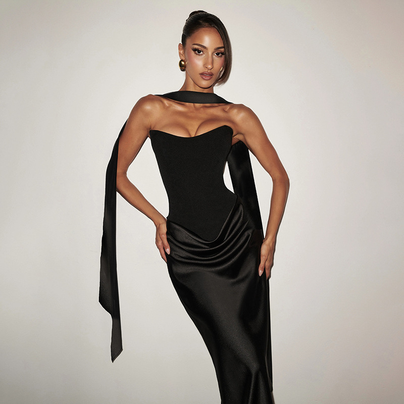 Elegant Design: Features a sleek, sleeveless silhouette with ribbon accents and a body-hugging fit for a sophisticated look.
